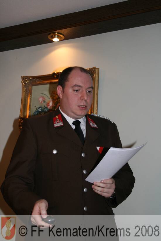 Am 28. März 2008 hielt die FF Kematen an der Krems die jährliche Vollversammlung ab.