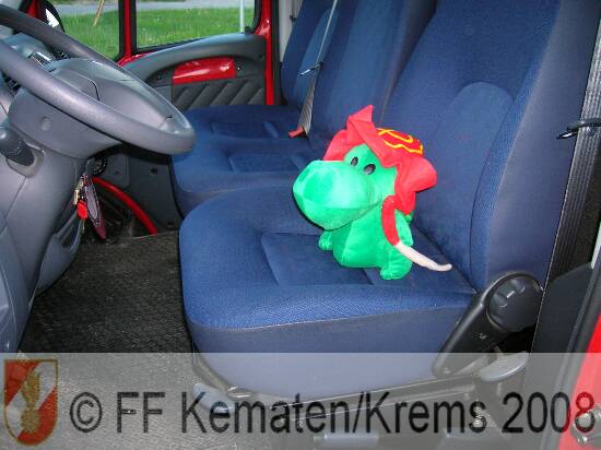 In solchen Situationen kommt der ?Traumabär? zum Einsatz, um dem Kind zu zeigen, dass auch er eine Uniform trägt und auf das Kind aufpassen wird. So wird den jungen Opfern etwas von Ihrer Angst genommen und es gibt einen Freund zum Festhalten. Bei der FF Kematen/Krems ist zwar kein ?Traumabär? im Einsatz, jedoch entschieden wir uns für ein Plüschtier in Form ? wie könnte es anders sein ? des Drachens Grisu mit dem klingenden Namen ?Helpi?. Helpi trägt einen roten Helm und fährt bei jedem Einsatz in unseren drei Einsatzfahrzeugen mit.