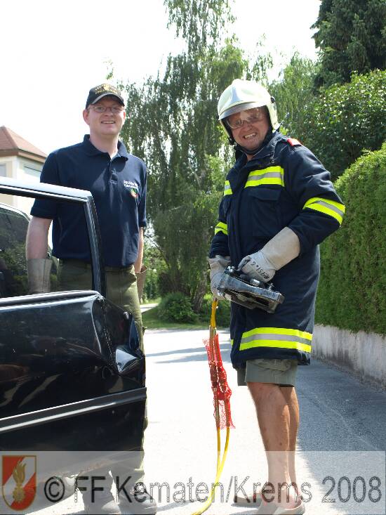 Die Besucher konnten sich über unsere Einsatzzentrale und Fahrzeuge inklusive Ausrüstung bei den Feuerwehrmännern fachkundig informieren und mit dem Bergegerät und anderen Geräten auf Tuchfühlung gehen. Unter anderem stand ein Auto zur Bearbeitung bereit.