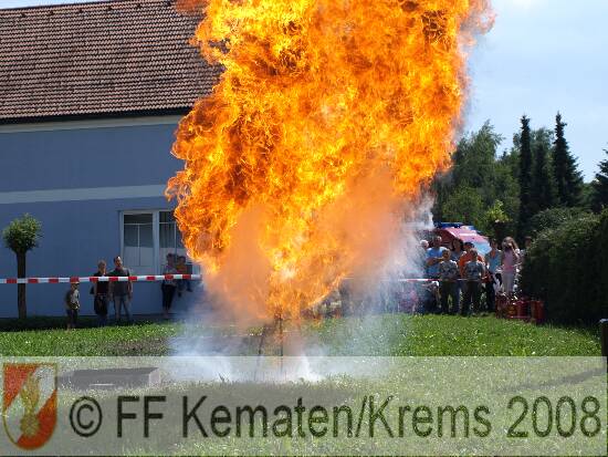 Mit den wertvollen Tipps von OAW Andreas Charko war es den Besuchern möglich das Löschen eines Brandes mittels Feuerlöscher zu erproben. Weiters wurde die Gefahr des Löschens eines Fettbrandes mit Wasser anschaulich demonstriert - die meterhohe Stichflamme sorgte für staunende Gesichter.