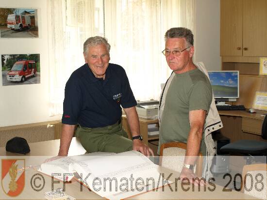 Unser Ehren-Hauptbrandinspektur Rupert Leutgeb konnte interessierten Besuchern dank seiner langjährigen Tätigkeit zu wohl jeder Seite der Chronik spannende Details erläutern. Bei der Fotopräsentation die mittels Beamer realisiert wurde, konnten ausgewählte Bilder aus dem Fotoarchiv der FF Kematen betrachtet werden.