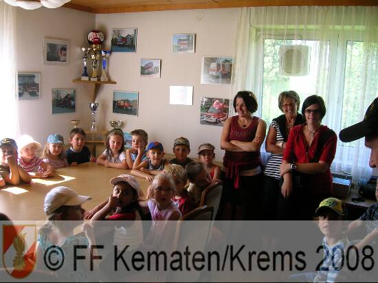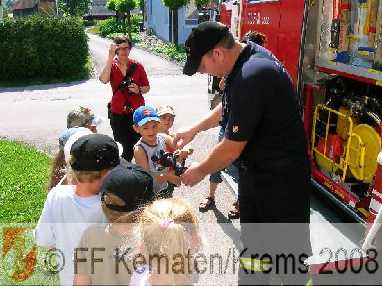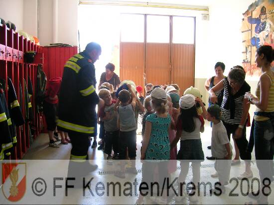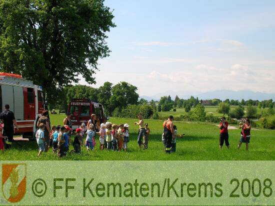 Neben der Räumungsübung in der Volksschule Kematen am 20.Juni, fand ein weiteres Ereignis statt: Die beginnenden Schulanfänger des Kindergarten besuchten die FF Kematen.