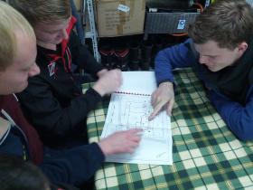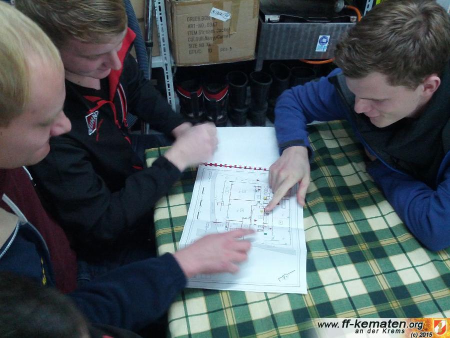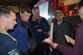 Im Container wurden vom Kommandanten Brandschutzpläne erklärt und im Rahmen von praktischen Übungen von den Feuerwehrmitgliedern ebenso "gelesen" und interpretiert.