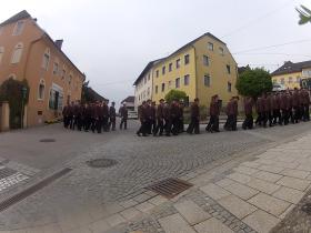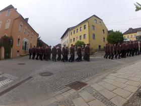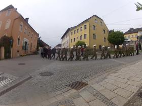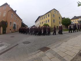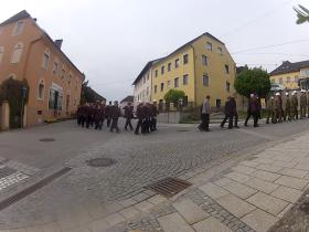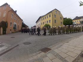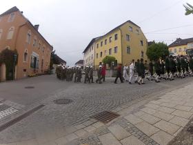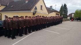 Die Feuerwehren und die Musikkappelle marschierten dann traditionsgemäß über den Kirchenplatz und führten bei den Ehrengästen die Defilierung durch. Im Gasthaus Oberer Strigl Kirchenwirt ließen wir bei Tellerfleisch und Getränken die Feier des heiligen Florian gebührend ausklingen.
