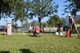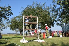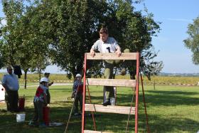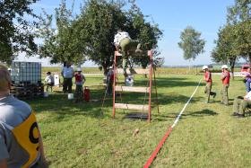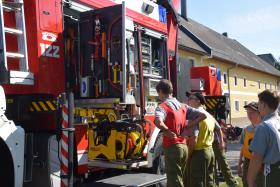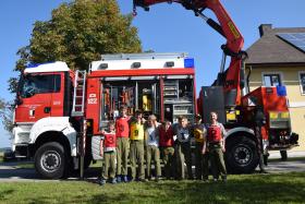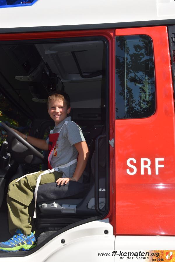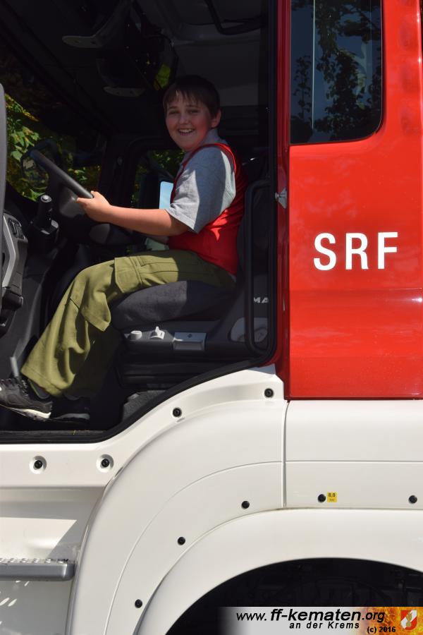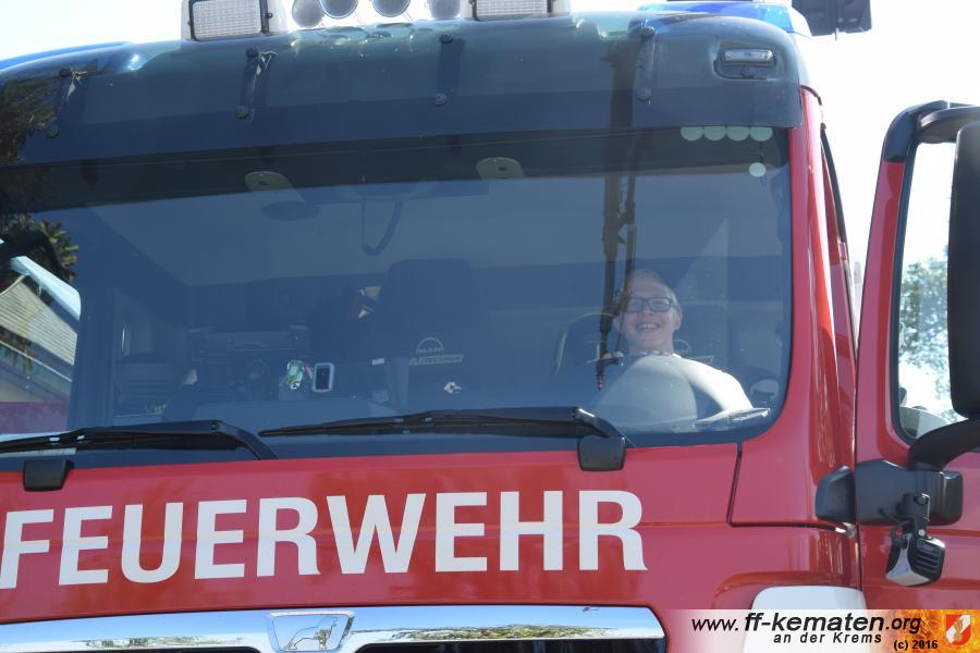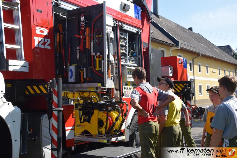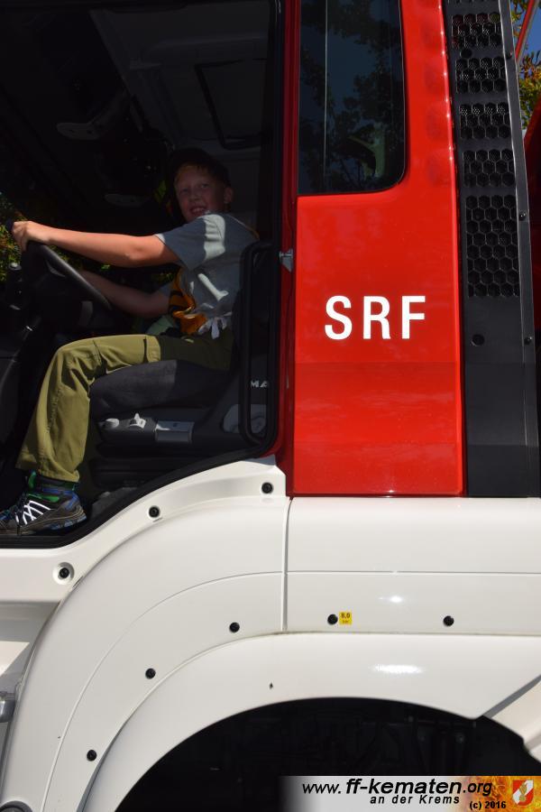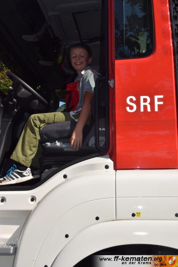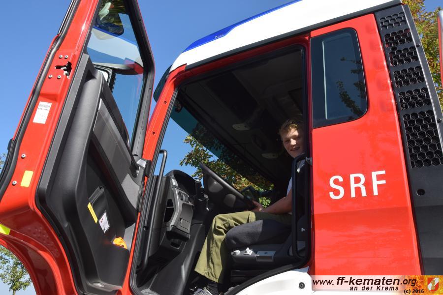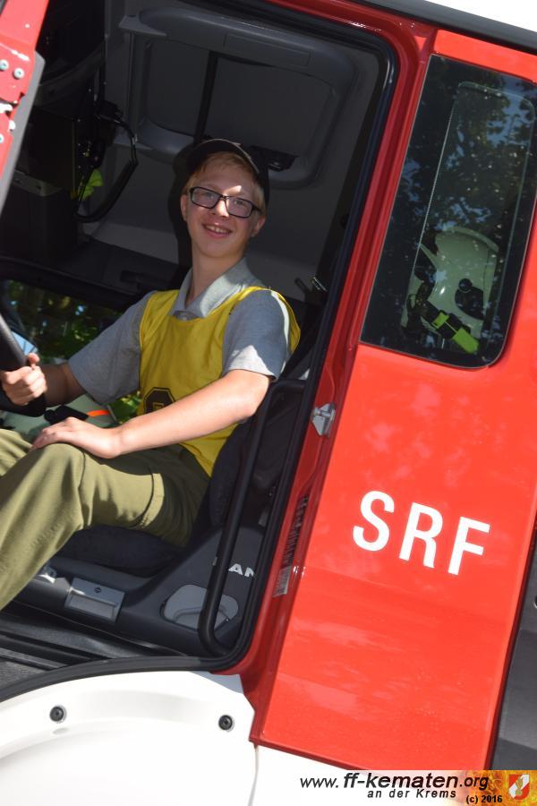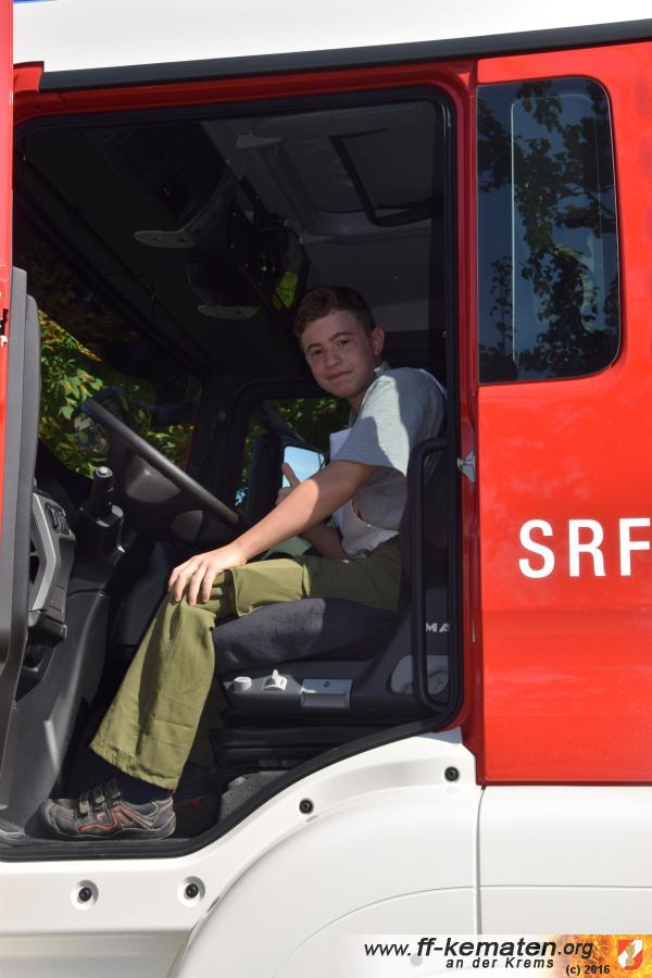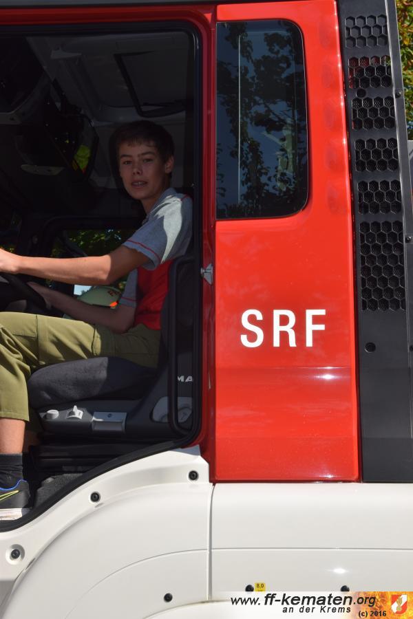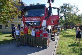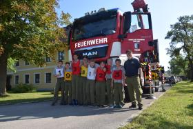 Zur Überbrückung der Wartezeiten konnten unsere Jungs auch mit der Drehleiter der FF Bad Hall Kematen aus 30 Meter Höhe bei herrlichem Herbstwetter betrachten und das neue SRF der FF Traun besichtigen.