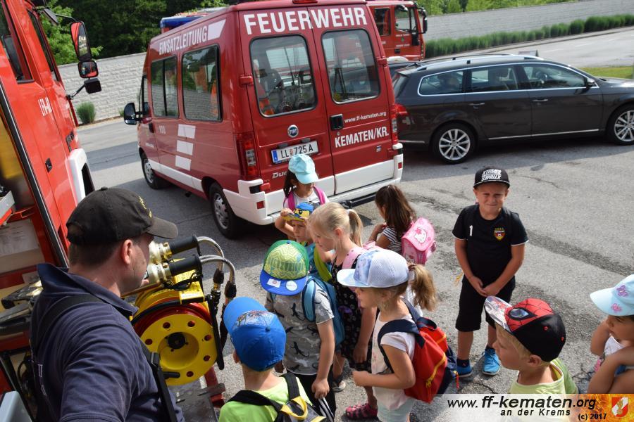 Am 23. Juni 2017 besuchten die beiden Kindergärten und die Volksschule die Feuerwehr Kematen.