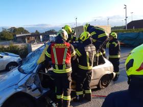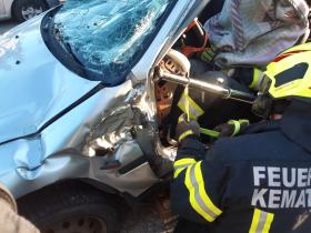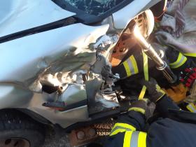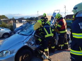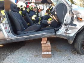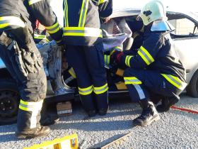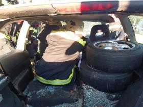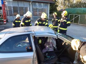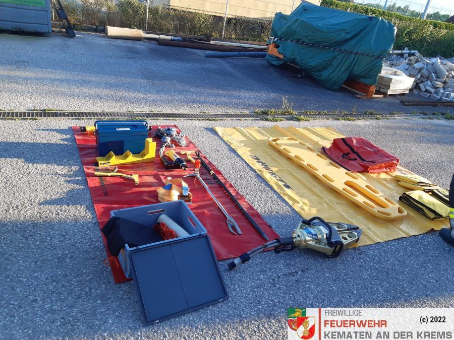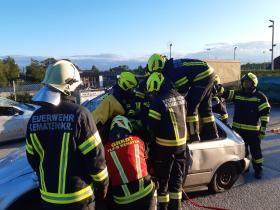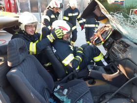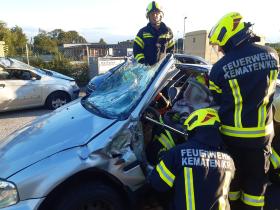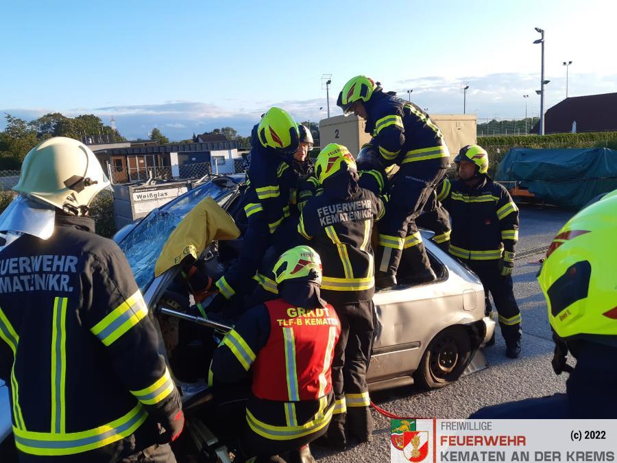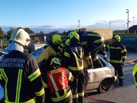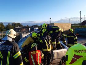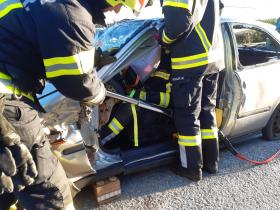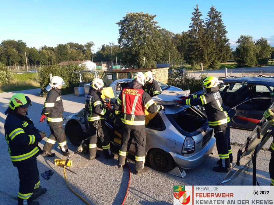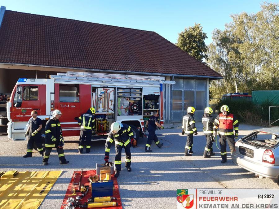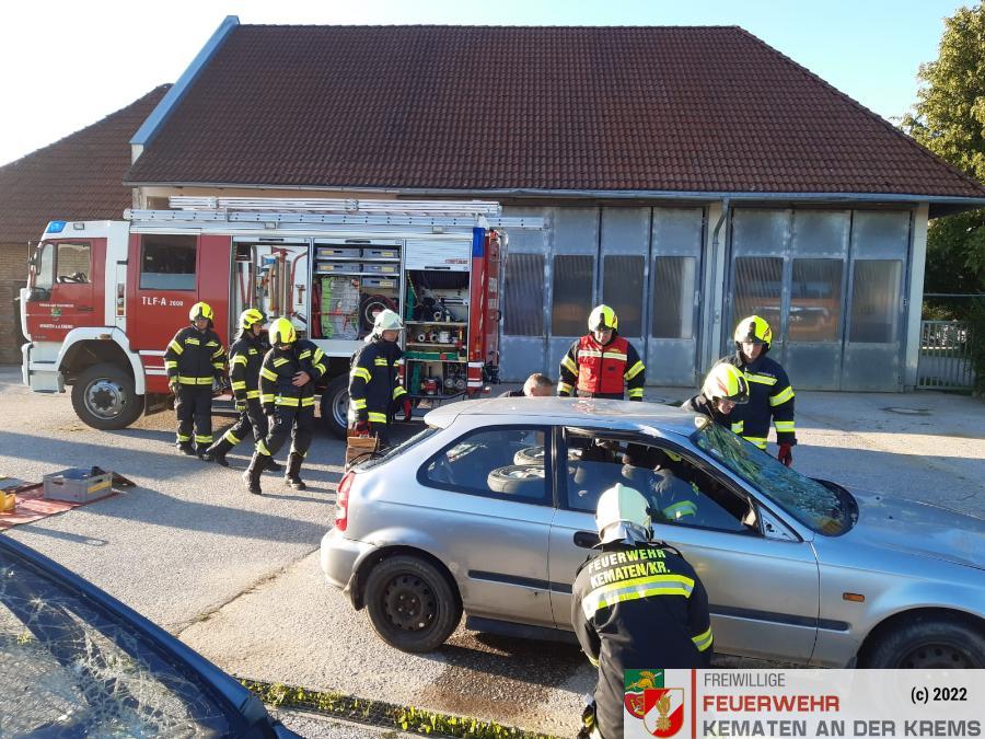 Nach der Besichtigung wurde mit dem Fahrzeug noch geübt. Übungsannahme war ein Verkehrsunfall mit eingeklemmter Person.