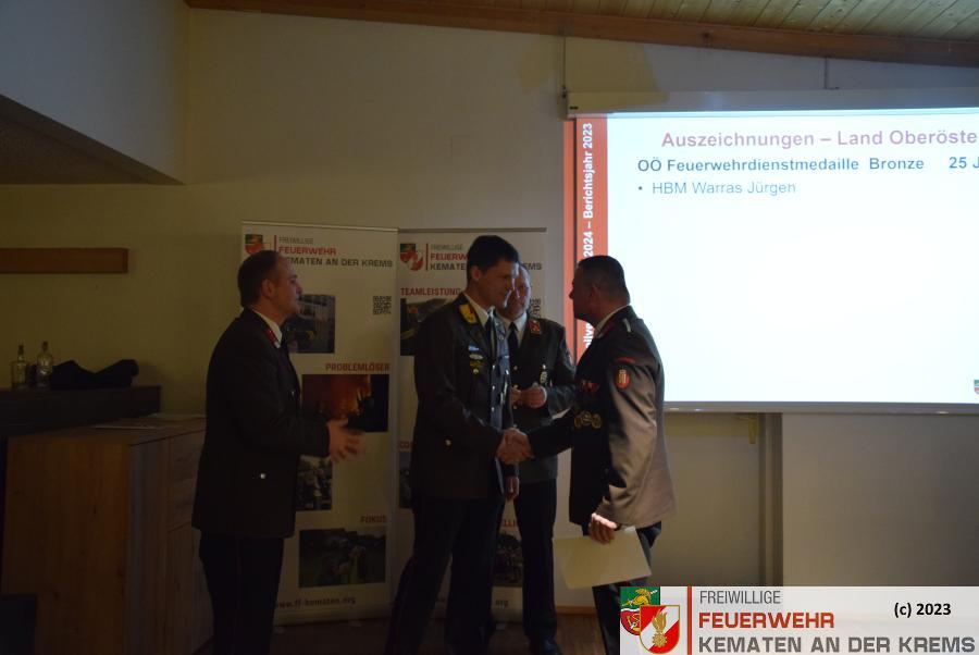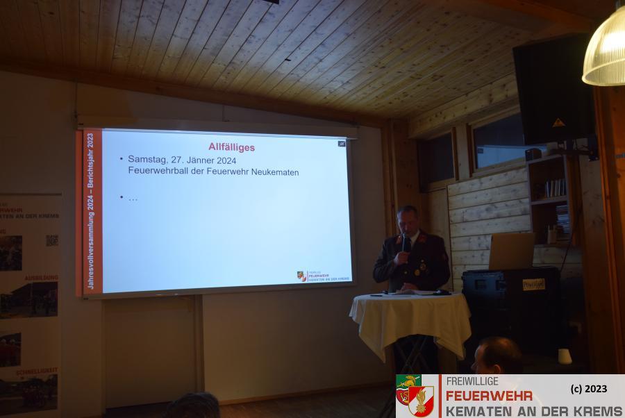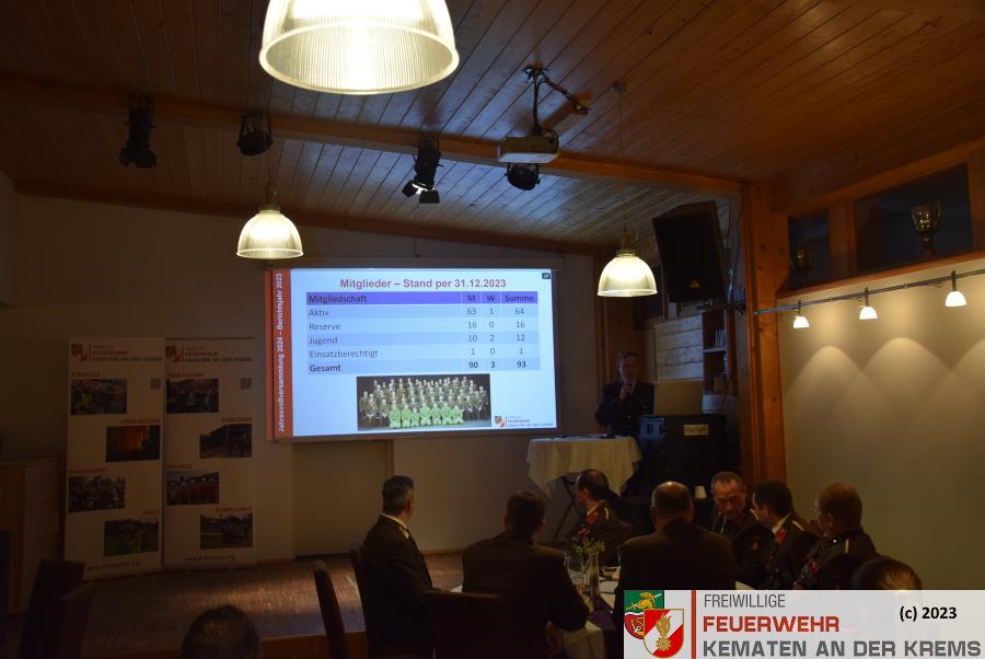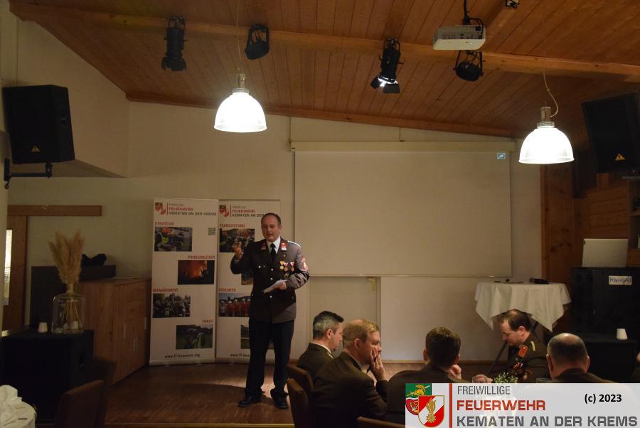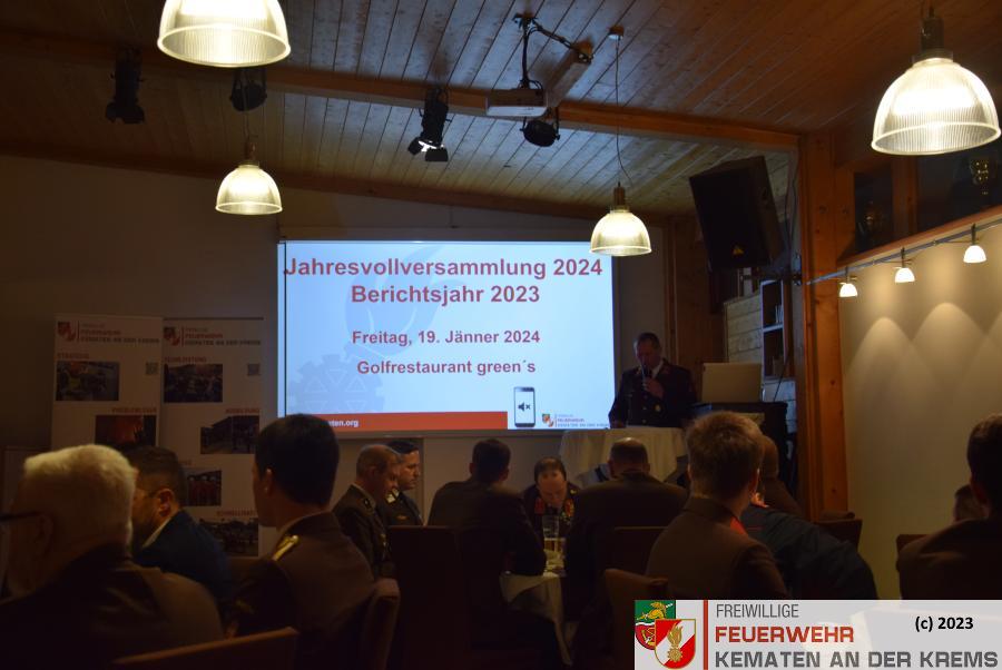 Die Freiwillige Feuerwehr Kematen an der Krems hielt am Freitag, den 19. Jänner 2024 die Jahresvollversammlung über das Berichtsjahr 2023 im Golfrestaurant Green‘s in Kematen ab.