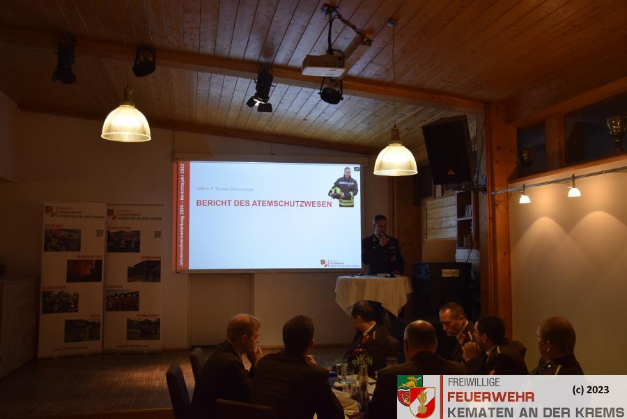 Mit der Atemluftfüllstation, die bei der Feuerwehr Kematen an der Krems stationiert ist, wurden im vergangenen Jahr 560 Flaschen (für 12 Feuerwehren) gefüllt. Der Atemschutzbeauftragte HBM d. F. Thomas Ehrensperger berichtete über die Einsätze bei denen Atemschutzträger erforderlich waren sowie über die Ausbildung im Bereich Atemschutz.