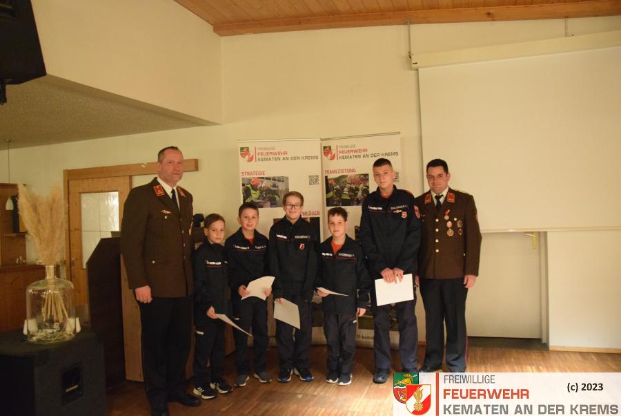 BI Christoph Schützenhofer sprach stellvertretend für HBM d. F. Roland Eiber über die Feuerwehrjugend, welche aktuell einen Stand von 25 Jugendlichen im Pflichtbereich aufweist. Weiters wurden die Leistungen der Jugendlichen bei Bewerben und beim Wissenstest gelobt. Besonders hervorgehoben wurde die Teilnahme am heurigen Bezirksfeuerwehrjugendlager, sowie die durchgeführte „Jugendübung“.