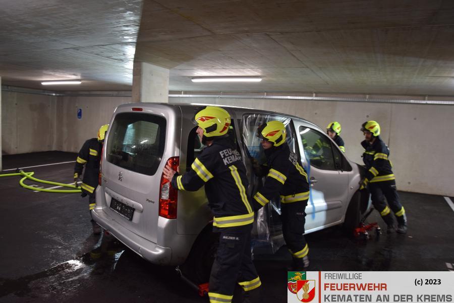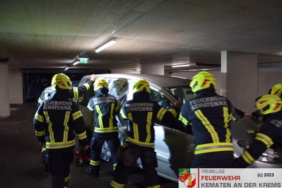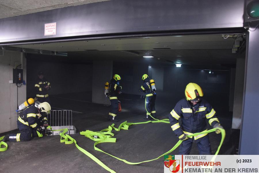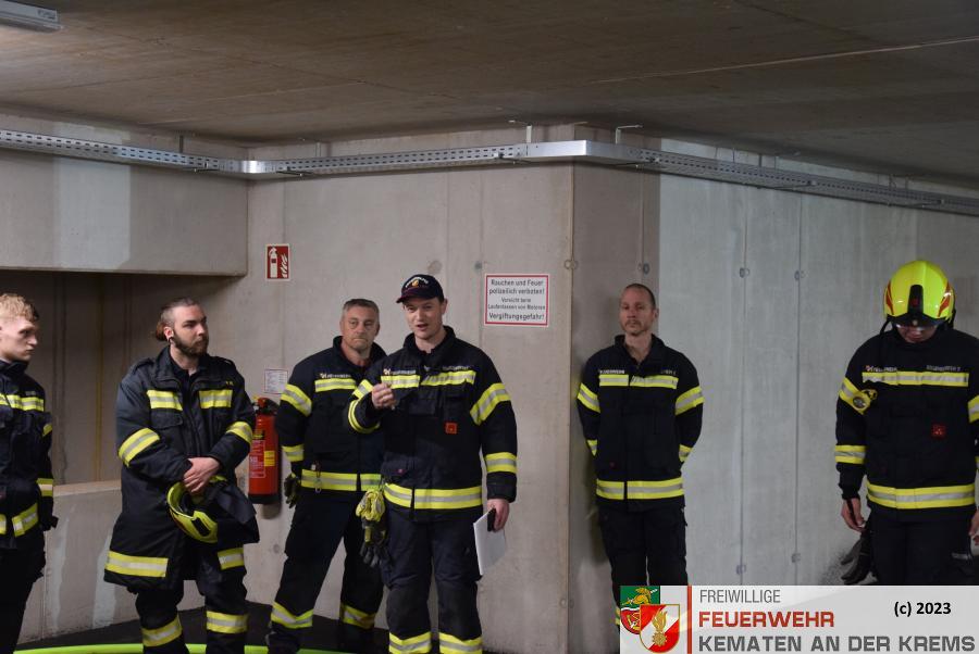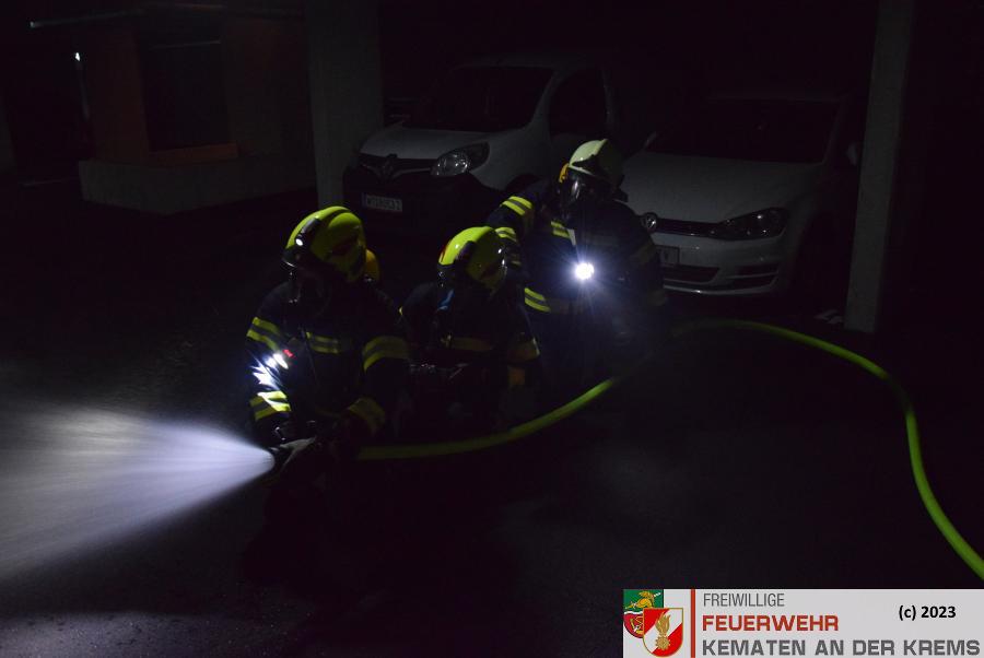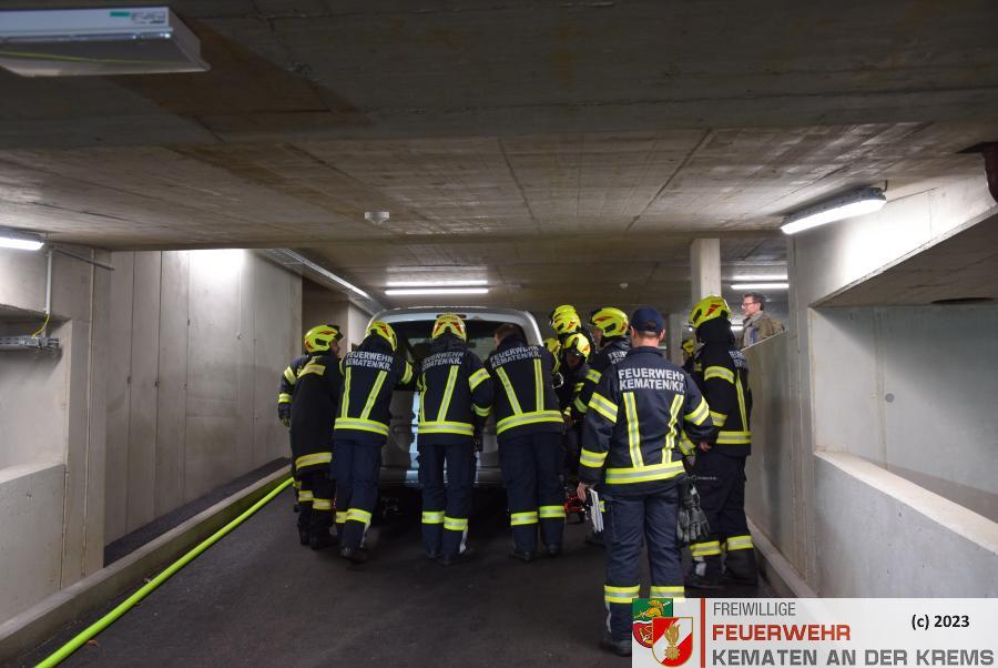 Am 11.3.2024 fand eine Zugsübung der FF Kematen statt. Übungsannahme war ein Fahrzeugbrand in einer Tiefgarage. Bei einem Elektrofahrzeug hat es zu brennen begonnen. Nach dem Eintreffen erkundete der Einsatzleiter das Objekt und machte sich ein erstes Bild der Lage. Daraufhin schickte er den Atemschutztrupp zu Menschenrettung in die Tiefgarage. Es konnte eine Person kurz darauf gerettet werden und infolge dessen führten unsere FMDs die Erstversorgung durch. Da es keine weiteren Vermissten gab, wurde mit der Brandbekämpfung gestartet. Kurz darauf konnte „Brand aus“ durchgegeben werden.