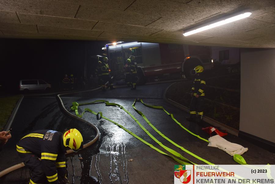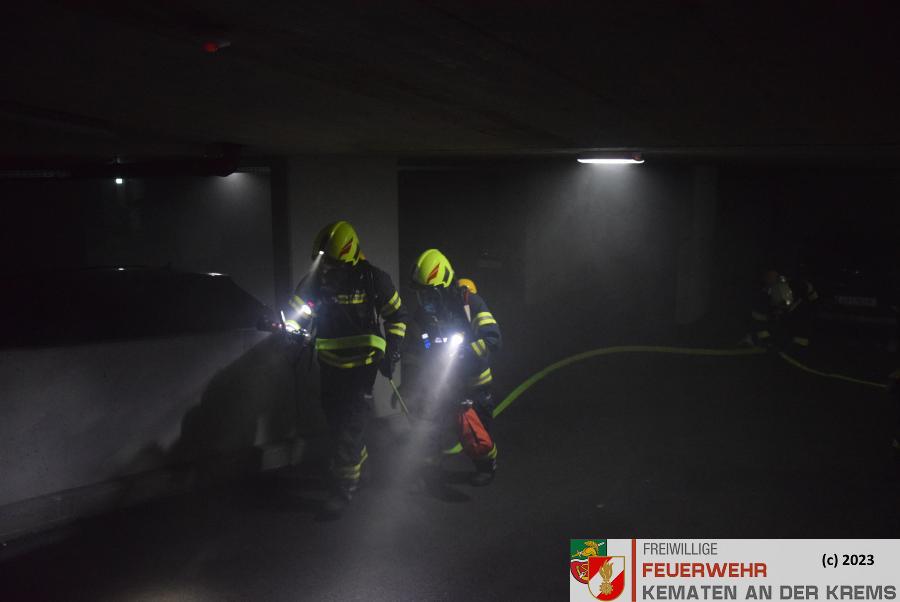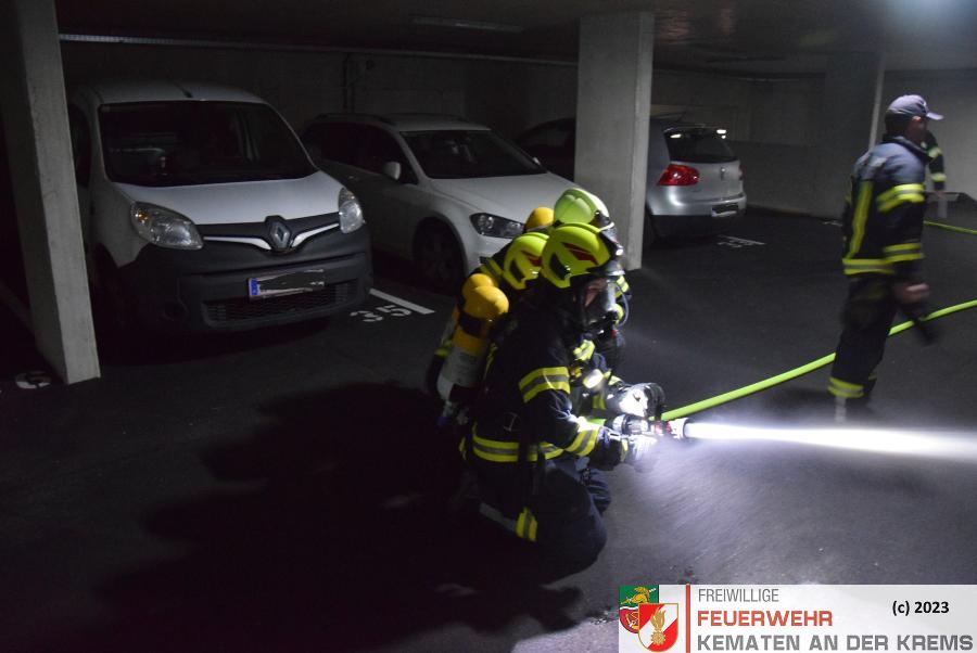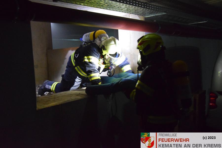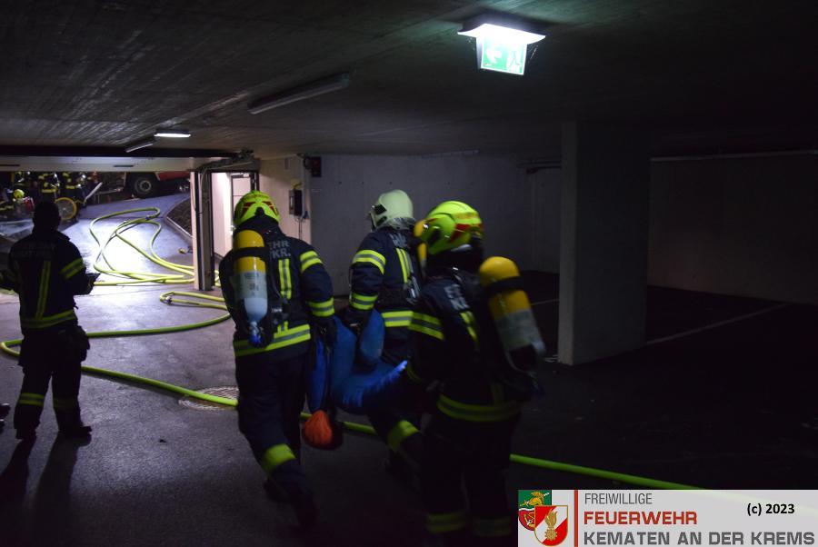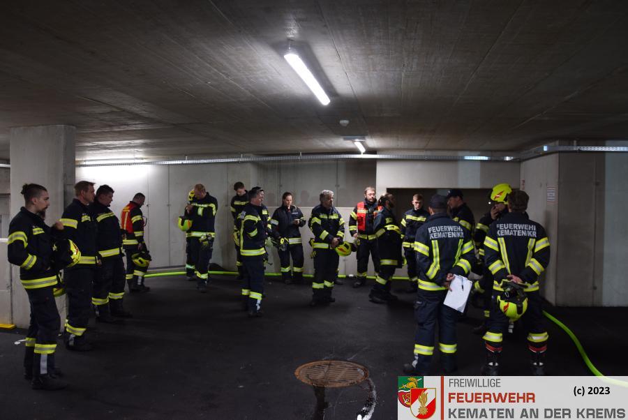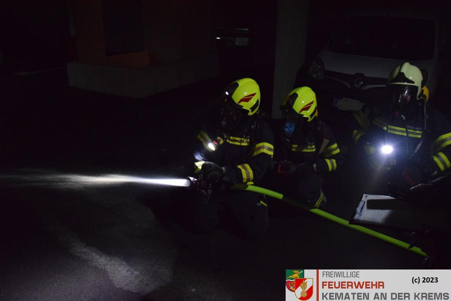 Am 11.3.2024 fand eine Zugsübung der FF Kematen statt. Übungsannahme war ein Fahrzeugbrand in einer Tiefgarage. Bei einem Elektrofahrzeug hat es zu brennen begonnen. Nach dem Eintreffen erkundete der Einsatzleiter das Objekt und machte sich ein erstes Bild der Lage. Daraufhin schickte er den Atemschutztrupp zu Menschenrettung in die Tiefgarage. Es konnte eine Person kurz darauf gerettet werden und infolge dessen führten unsere FMDs die Erstversorgung durch. Da es keine weiteren Vermissten gab, wurde mit der Brandbekämpfung gestartet. Kurz darauf konnte „Brand aus“ durchgegeben werden.