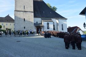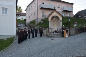 Nach dem Gottesdienst fand am Kirchenplatz ein Gedenken an verstorbene Kameraden statt. Anschließend wurden ausstehende Ehrungen vergeben, wonach der Festzug zum Gasthaus Kirchenwirt marschierte. Dort angekommen ließ man bei Tellerfleisch (oder Berner Würstel) und Getränken die Feier des Heiligen Florian gebührend ausklingen.