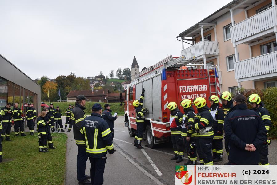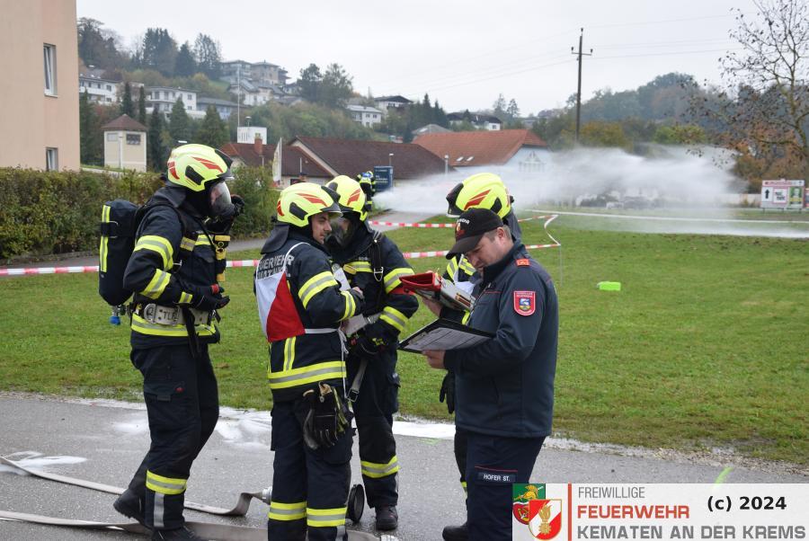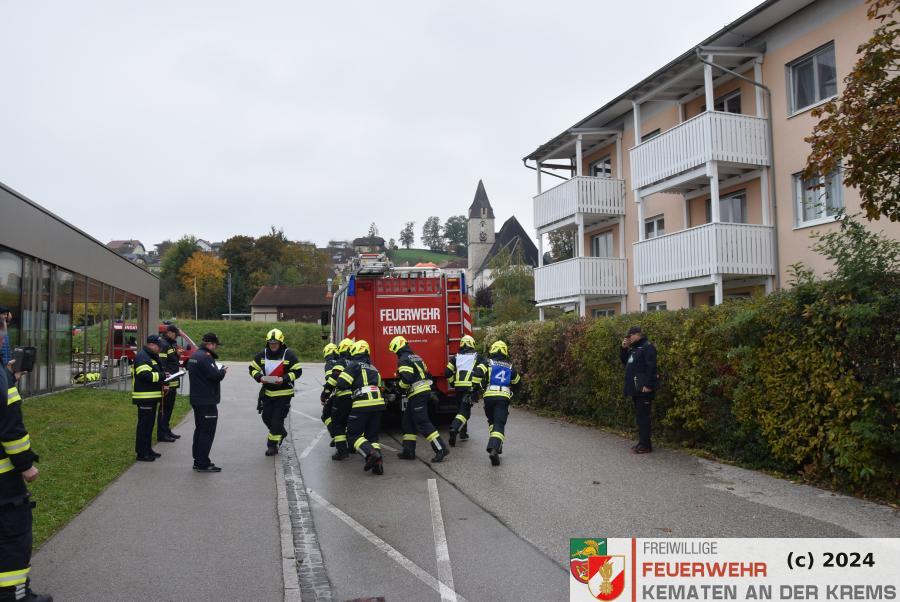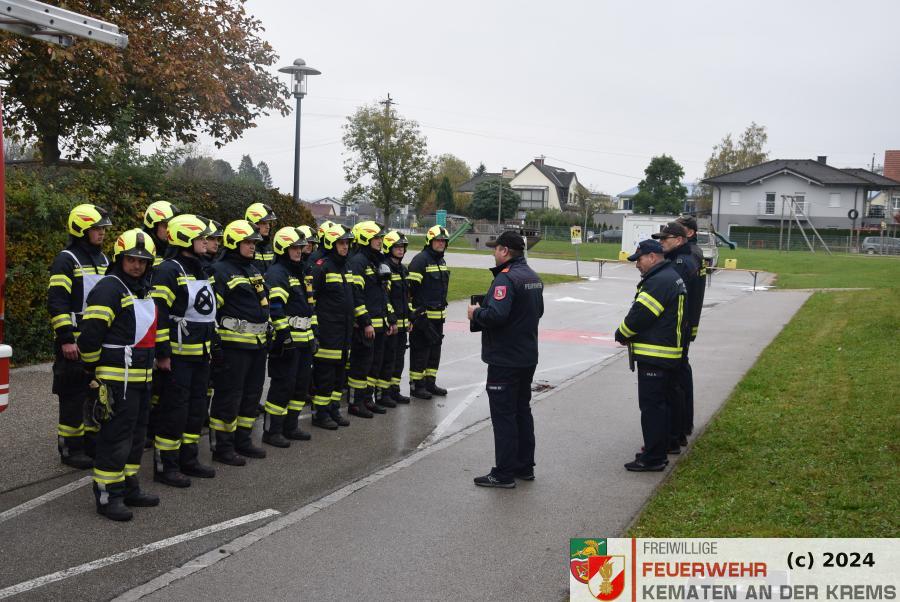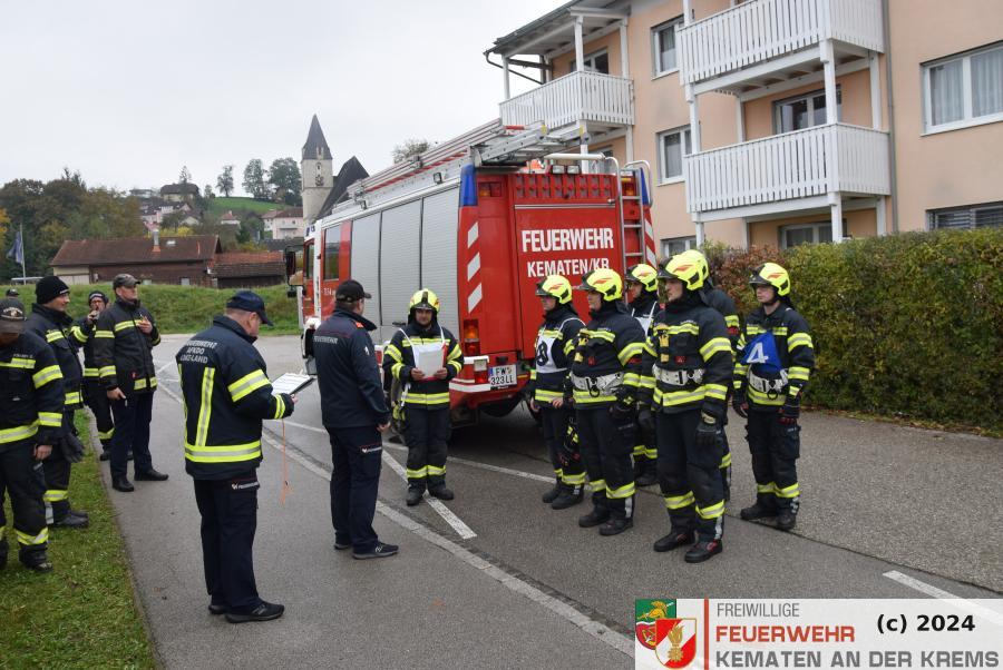 Am 19.10.2024 stand im Pflichtbereich Kematen die Branddienstleistungsprüfung an. Von den drei Feuerwehren stellten sich 7 Gruppen zu je 7 bzw. 9 Personen der Prüfung.