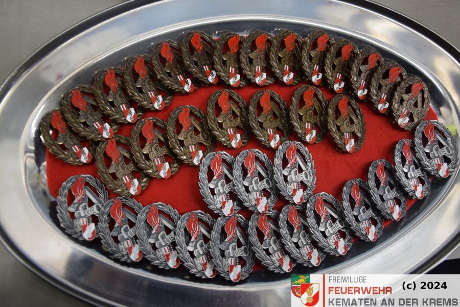 Von der FF Achleiten zwei Gruppen in silber und von der Feuerwehr Gerersdorf-Schachen je eine in Bronze und Silber.