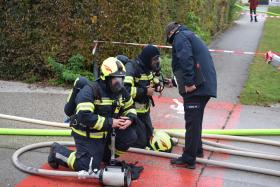 Danach geht es weiter zum Praktischen Teil. Dazu wurde eines der drei Szenarien (Zimmerbrand, Heckenbrand oder Flüssigkeitsbrand) gezogen und anschließend ausgeführt.