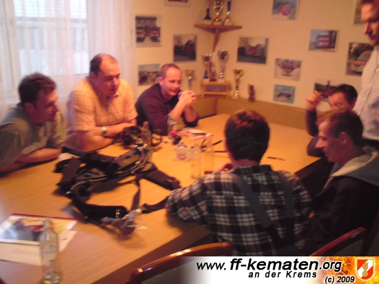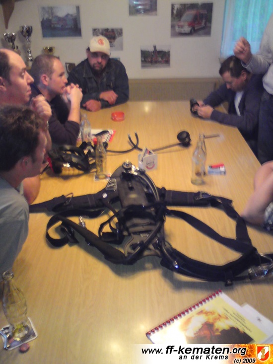 Um das Wissen der Kematner Atemschutztäger wieder aufzufrischen, wurde am 7. Mai 2009 von OAW Andreas Charko eine Übung zum Thema Atemschutzgeräte und Einsatztaktik abgehalten.