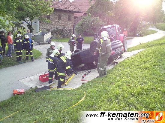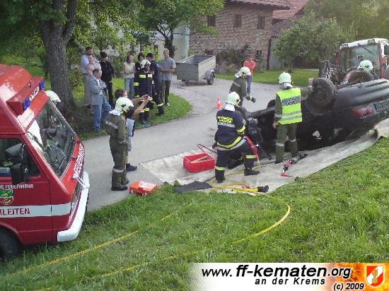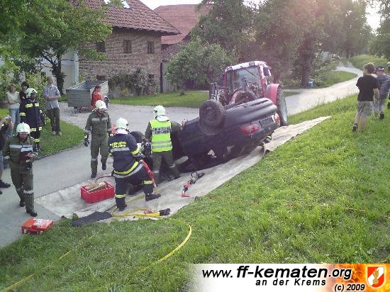 Nach dem Eintreffen und der Lageerkundung des Gruppenkommandanten wurde von der FF Kematen die Straße abgesperrt und ein Brandschutz aufgebaut. Zwei Mann mit hydraulischem Rettungsgerät (Zylinder) unterstützten die bereits mit der Rettung der eingeklemmten Insassen beschäftigen Achleitner Kameraden.
