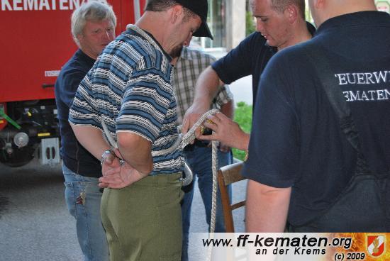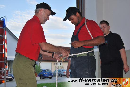 Thema der Monatsübung Juli war Gerätekunde am TLF-A 2000 und LFB-A2 bzw. Knoten im Feuerwehrdienst.