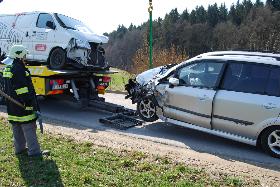 Unsere Aufgabe bestand darin, ausgelaufene Flüssigkeiten zu binden und dem Abschleppunternehmen beim Abtransport der 2 Unfallfahrzeuge zu helfen. Während der ganzen Tätigkeit wurde der Verkehr durch 2 Lotsen geregelt.
