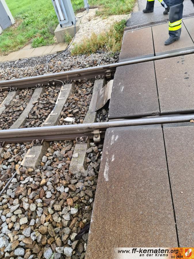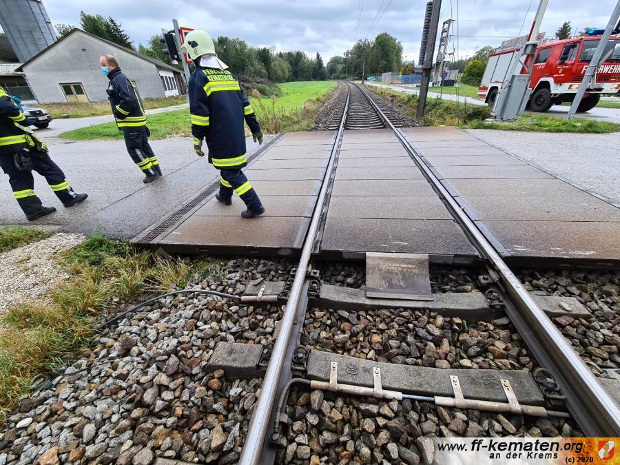 Beim Bahnübergang Winden kam ein Fahrzeuglenker auf die Gleise der Pyhrnbahn. Der Lenker konnte sich selbstständig befreien, das Fahrzeug wurde durch die Einsatzmannschaft von den Schienen zurück auf den Bahnübergang geschoben.
