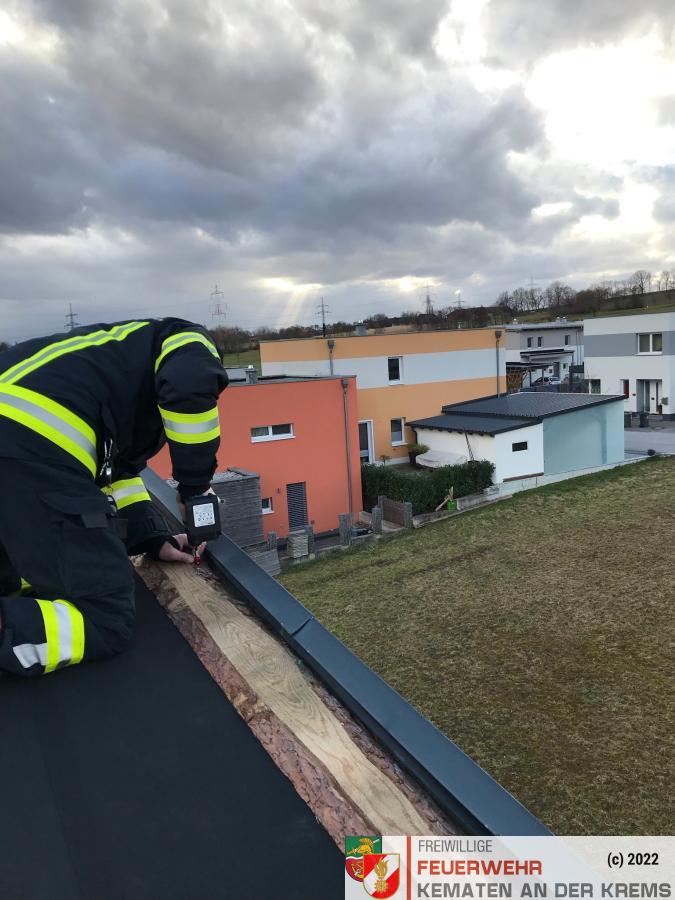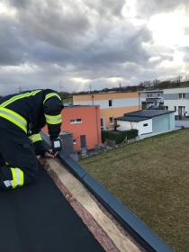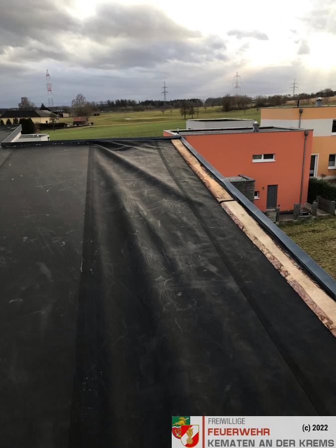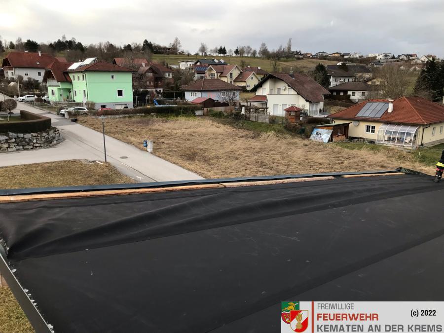 Am Dienstag, den 22. Februar wurden wir um 22:45 zu einem Einsatz Sturmschaden alamiert, bei dem ein Dach abgedeckt wurde.