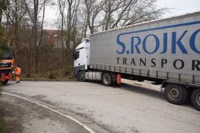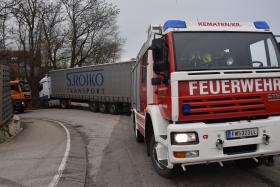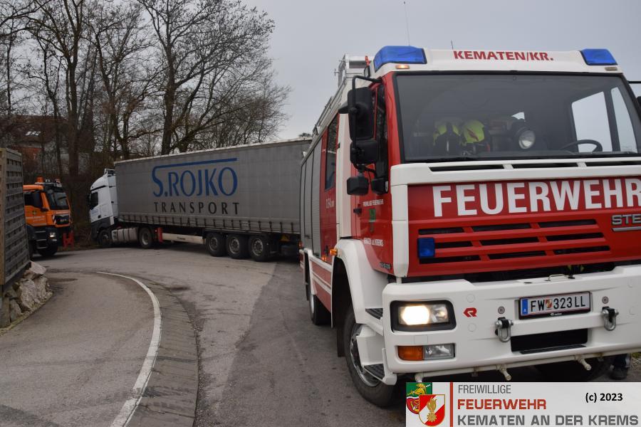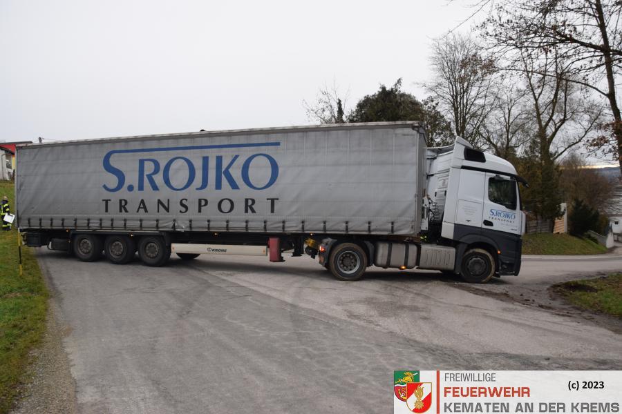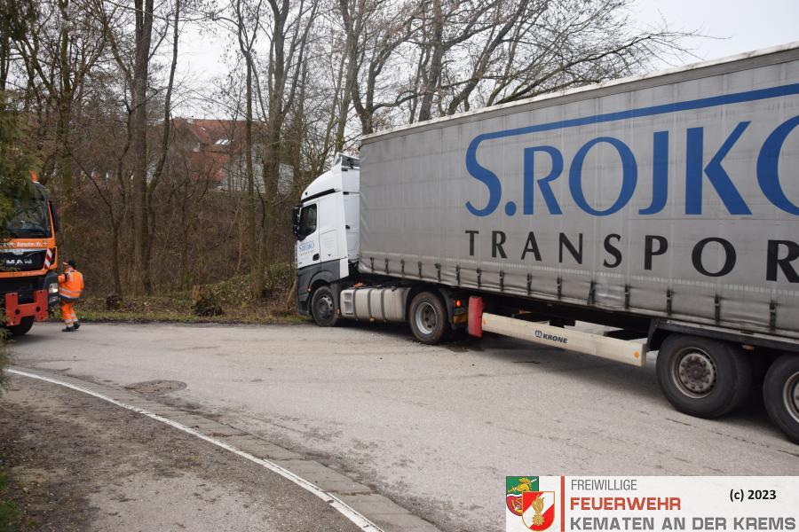 Am 11. Jänner vormittags ist ein LKW, beim Versuch am oberen Ende der Bergfeldstraße zu wenden, mit der Vorderachse in das Bankett gekommen und stecken geblieben.