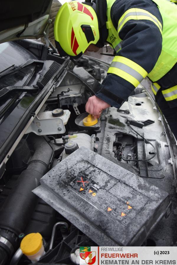 Durch die schnelle Reaktion des vorbeikommenden Nachbarn konnte das Auto rasch gelöscht und der Einsatz beendet werden.