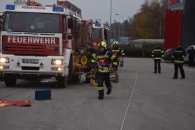 Danach wird in der Gruppe ein vorgegebenes Einsatzszenario abgearbeitet. Innerhalb eines festgelegten Zeitraums müssen die Unfallstelle abgesichert, Beleuchtung aufgebaut, Brandschutz hergestellt und mit dem hydraulischen Rettungsgerät gearbeitet werden.