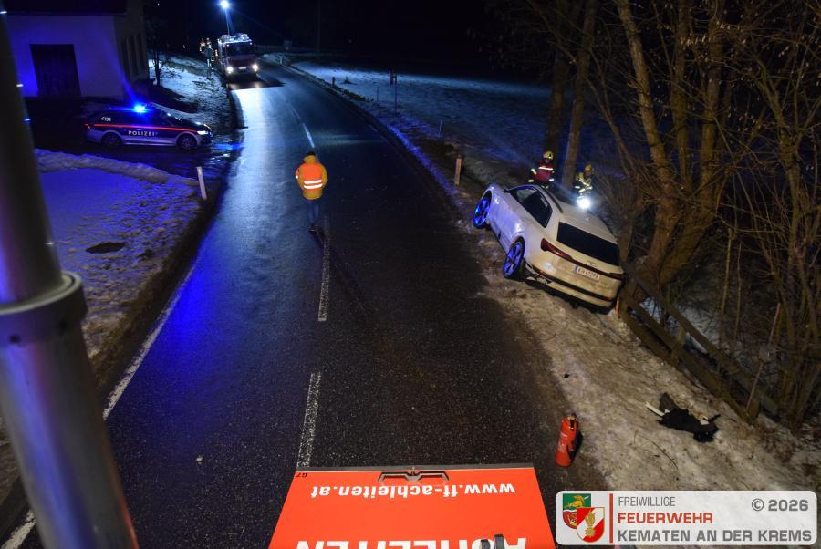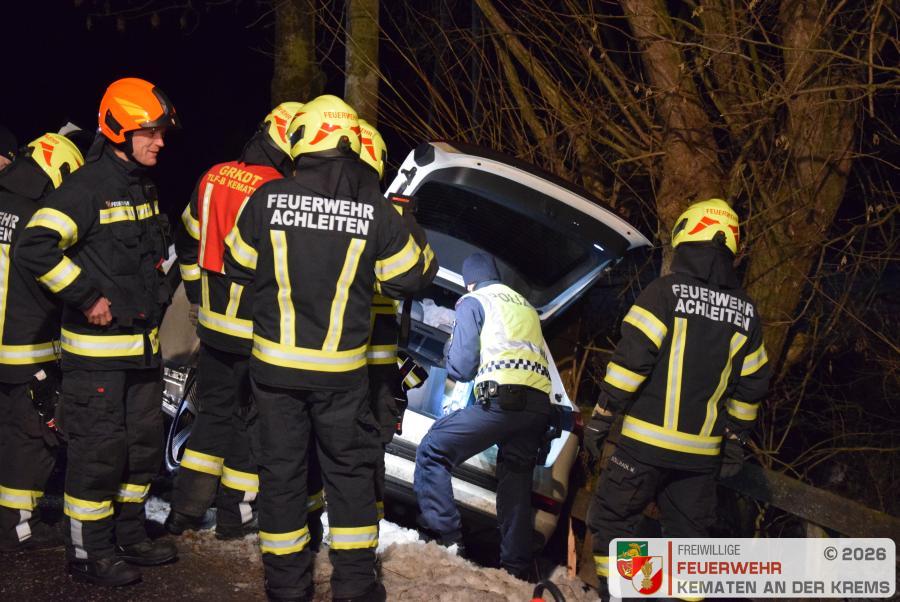 Nach dem Eintreffen am Unfallort wurde festgestellt, dass keine Person eingeklemmt ist – somit wurde durch die Feuerwehren lediglich die Unfallstelle abgesichert, Brandschutz aufgebaut und anschließend auf das Eintreffen des Abschleppdienstes gewartet.