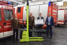 Mit dem Betrag von EUR 5.000,00 konnte der Ankauf eines elektrischen Deichselstaplers realisiert werden. Der Stapler wird für die Hubarbeiten von Einsatzmitteln bzw. sonstigem Material in das Hochregal bzw. die Lagerfläche in der Galerie der Fahrzeughalle verwendet.