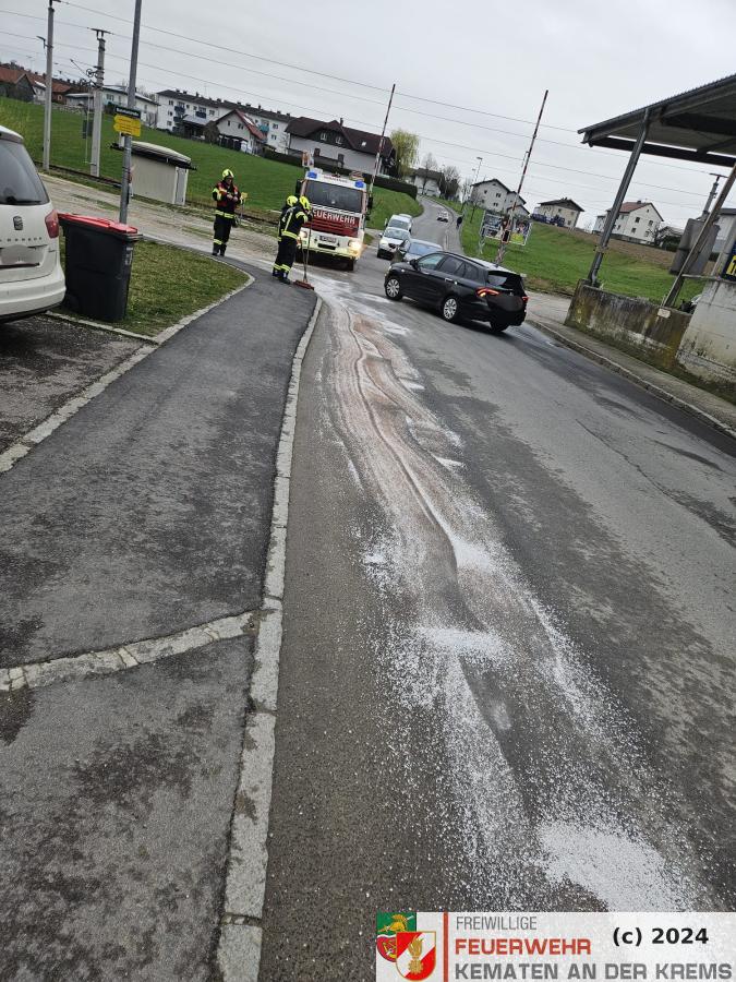 Ein Morgentlicher Sirenenalarm brachte uns zu einer Ölspur vor dem Kematner Bahnhof.