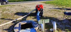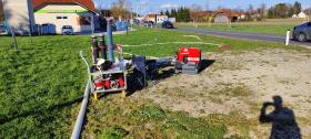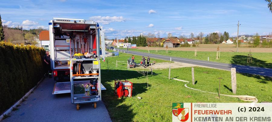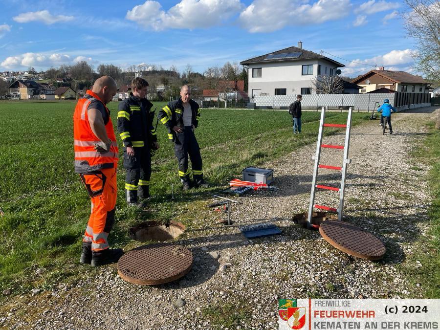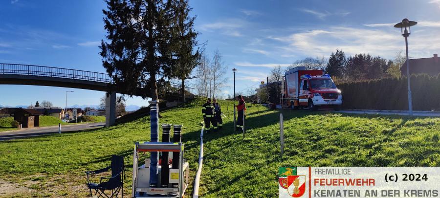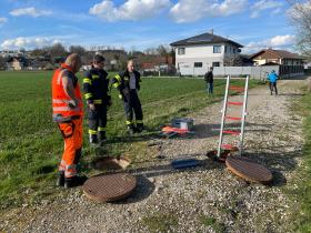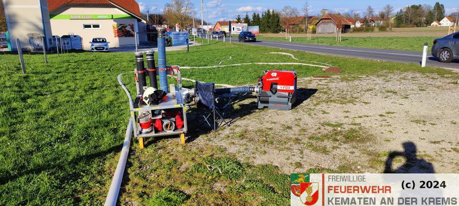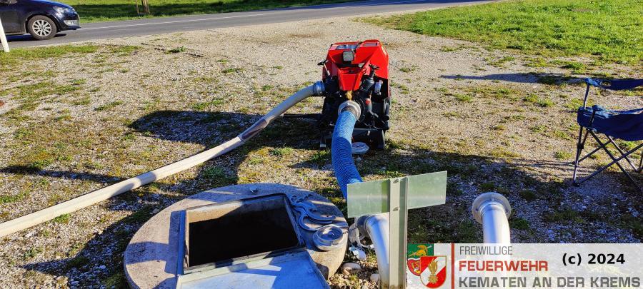 Nachdem bei einem PKW in der Nähe des Gemeindeamtes in Kematen etliche Liter Diesel in den Regenwasserkanal gelaufen sind, wird dieser gereinigt. Um das zu ermöglichen Pumpen wir ständig das von Quellen austretende Wasser in andere Kanalstränge um.