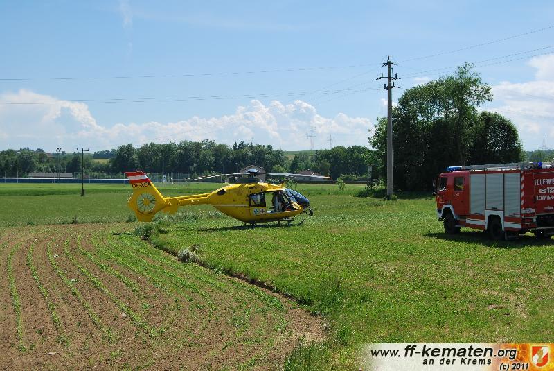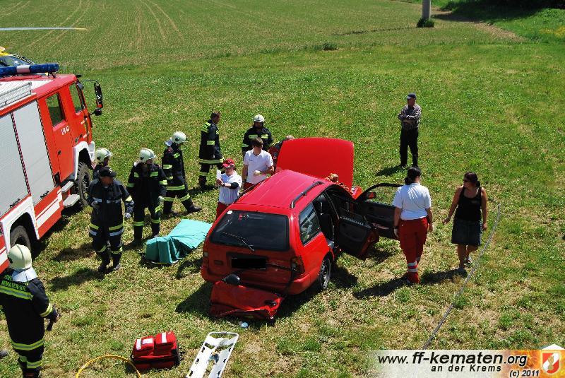 "Die Frau war an einer Kreuzung in Kematen an der Krems mit dem Firmenwagen zusammengeprallt, ihr Auto wurde durch die Wucht in eine Wiese geschleudert.