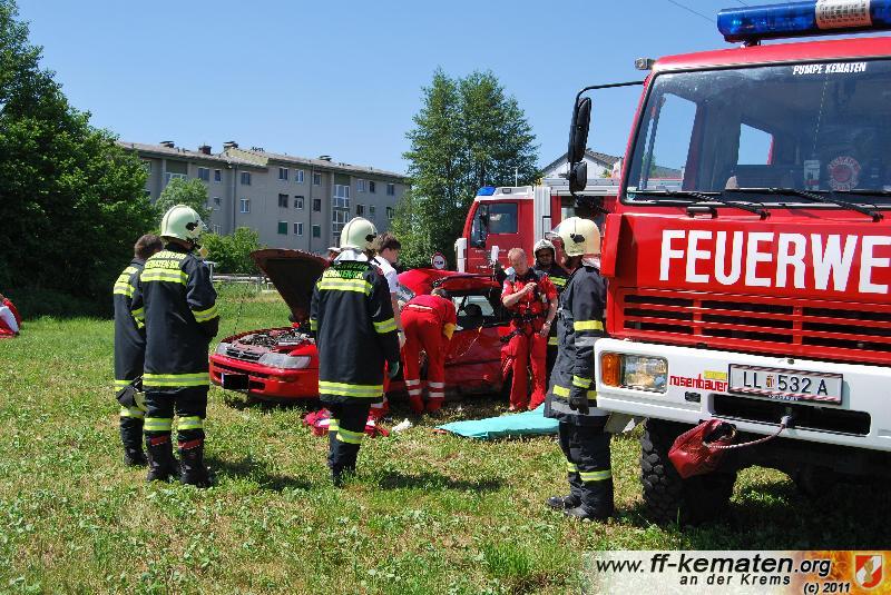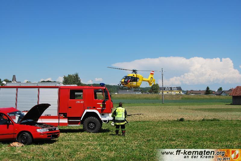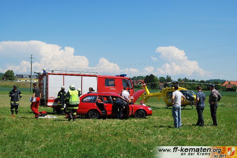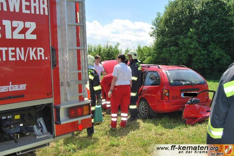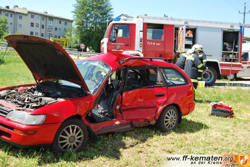 Die Feuerwehren Kematen und Achleiten wurden zu einem Verkehrsunfall mit eingeklemmter Person auf der B139 Kremstal-Bundesstraße gerufen.