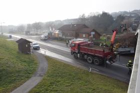 Auf der B139 kam am Freitagnachmittag ein Geländewagen samt Anhänger von der Straße ab und rammte einen Stromverteilerkasten sowie eine Fußgängerbrücke.