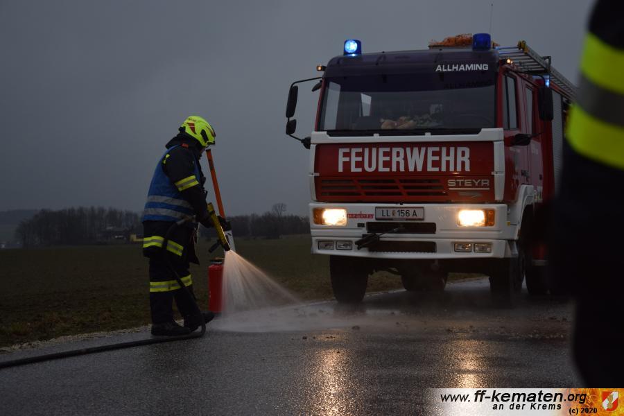 Die Gerersdorfer Straße war zwischen Allhaming und Gerersdorf rund eine Stunde lang gesperrt. Die Feuerwehr richtete eine Umleitung ein.