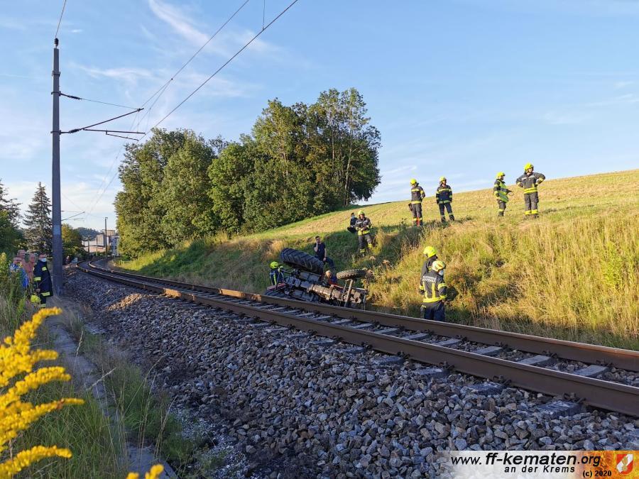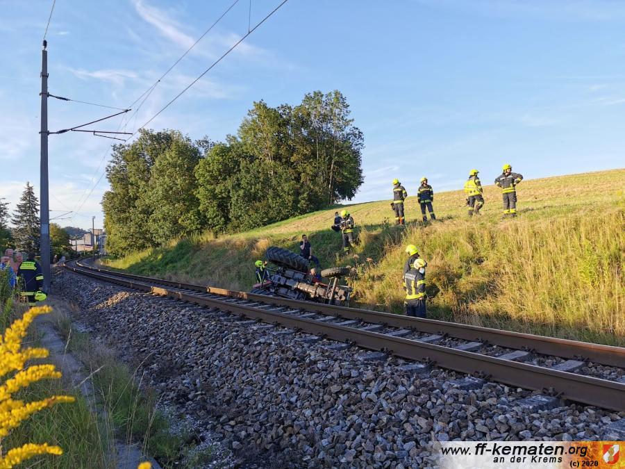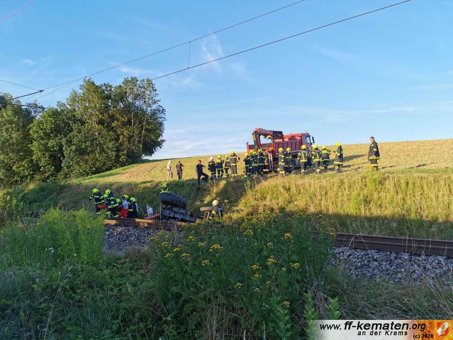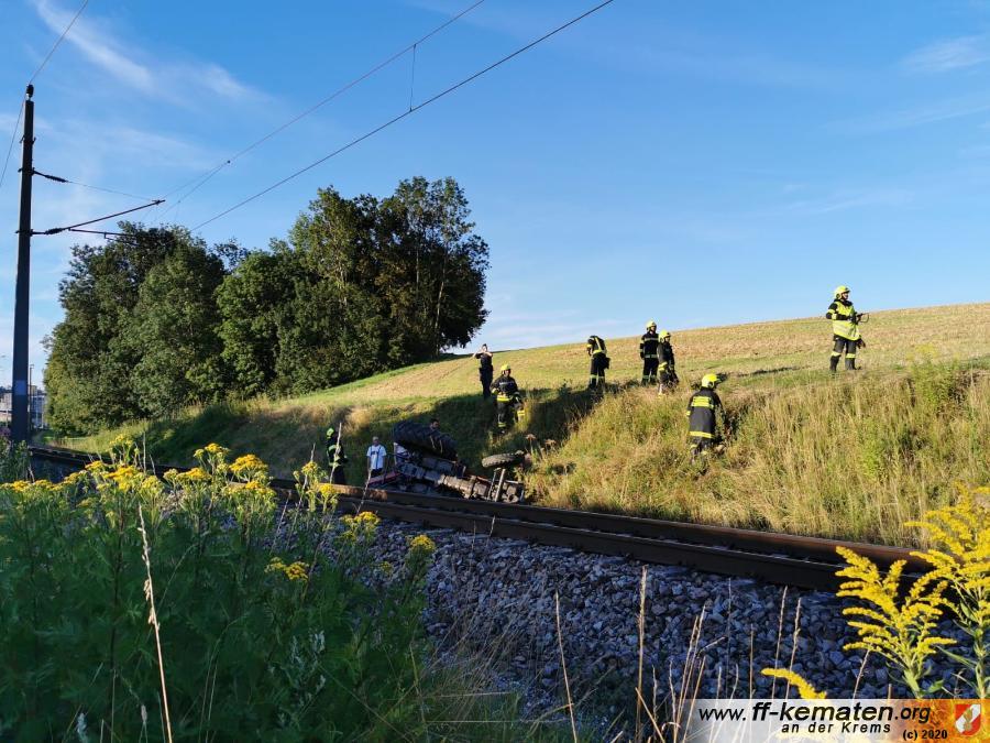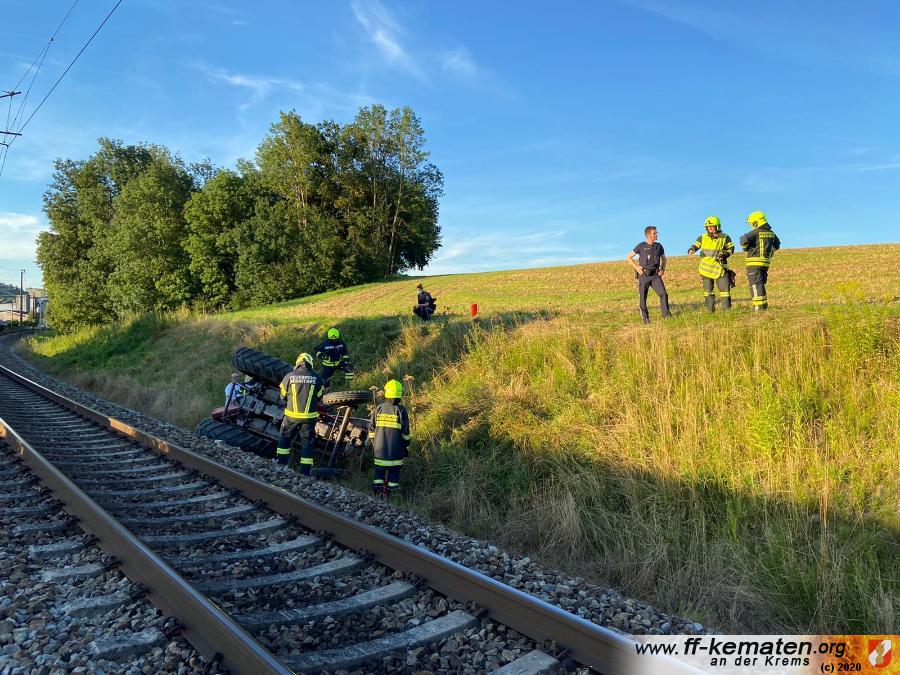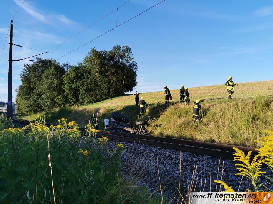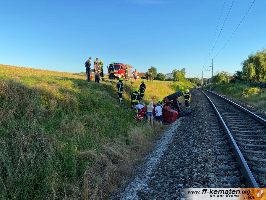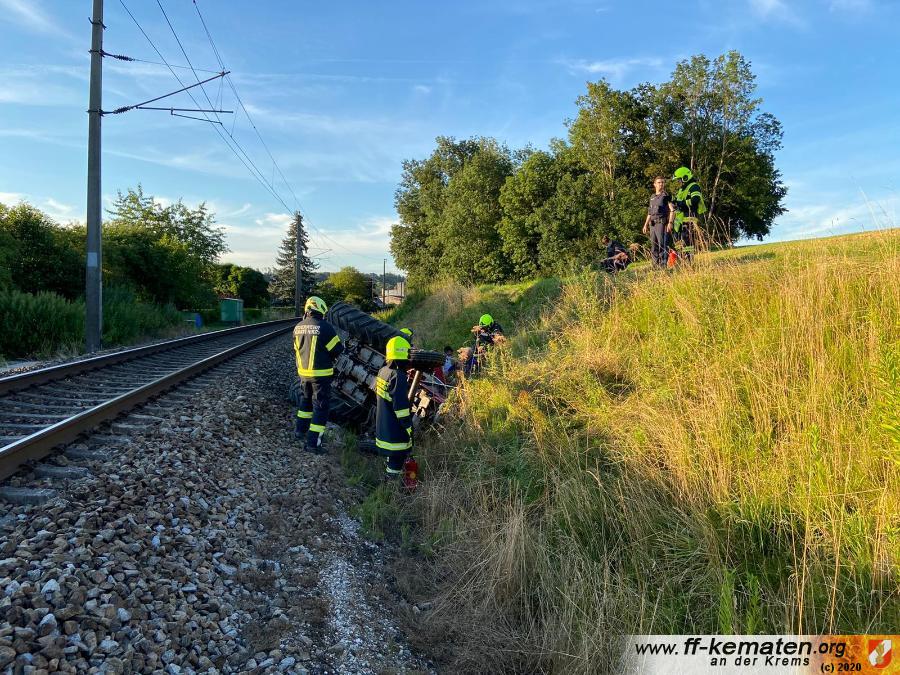 Am Montag den 27.Juli wurden die Feuerwehren Neukematen und Kematen an der Krems um 19:24 Uhr zu einer Fahrzeug Bergung alarmiert. Ein 86-Jähriger Landwirt stürzte mit seinen Traktor eine 3,5m hohe Böschung hinab, in unmittelbarer Nähe zu dem Bahngleis der Pyhrnbahn.