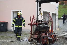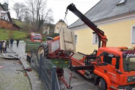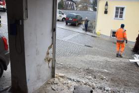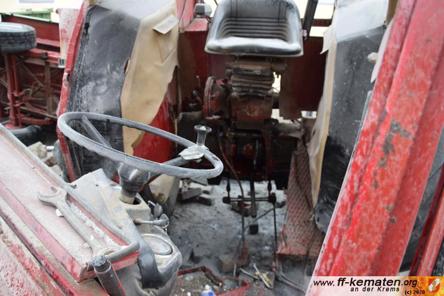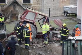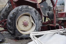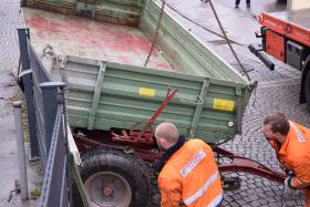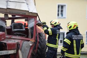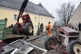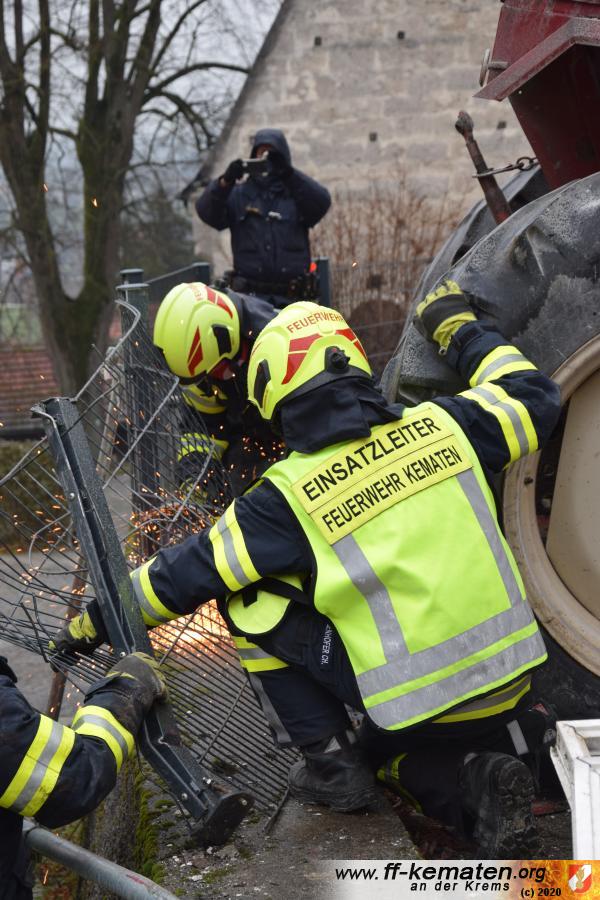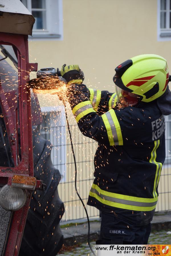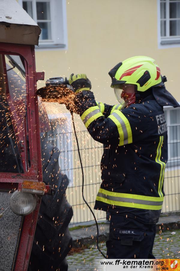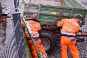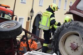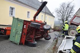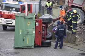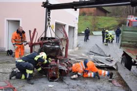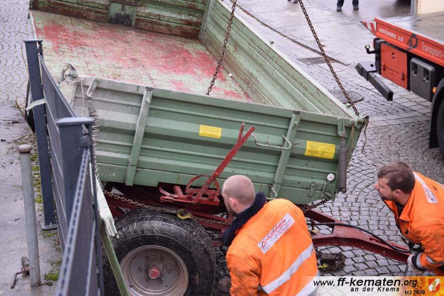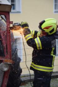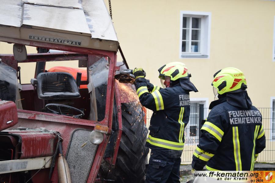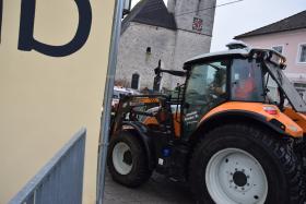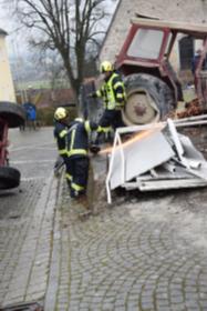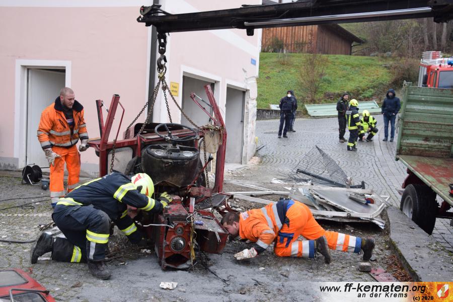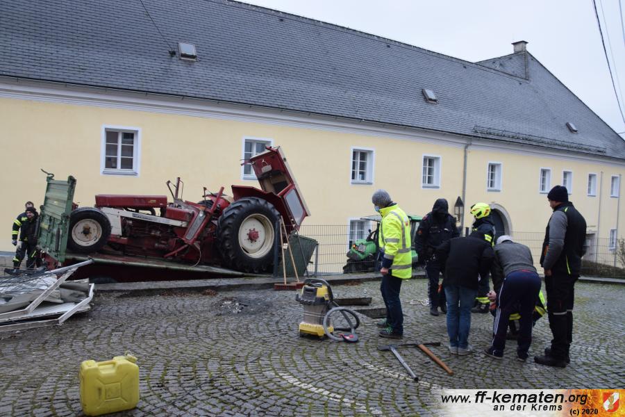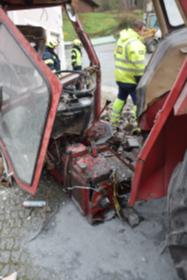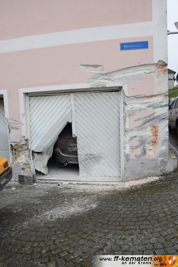 Ein Traktorgespann geriet in der Römerstraße außer Kontrolle und kollidierte am Kirchenplatz mit einem Gebäude.